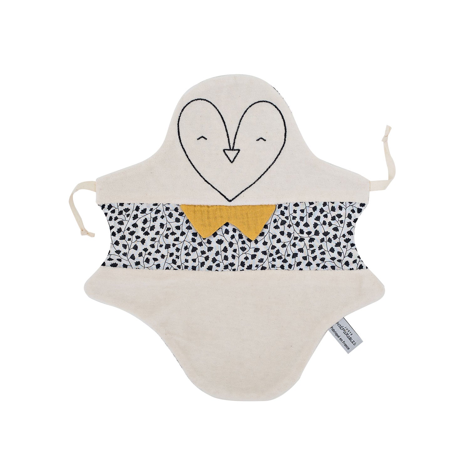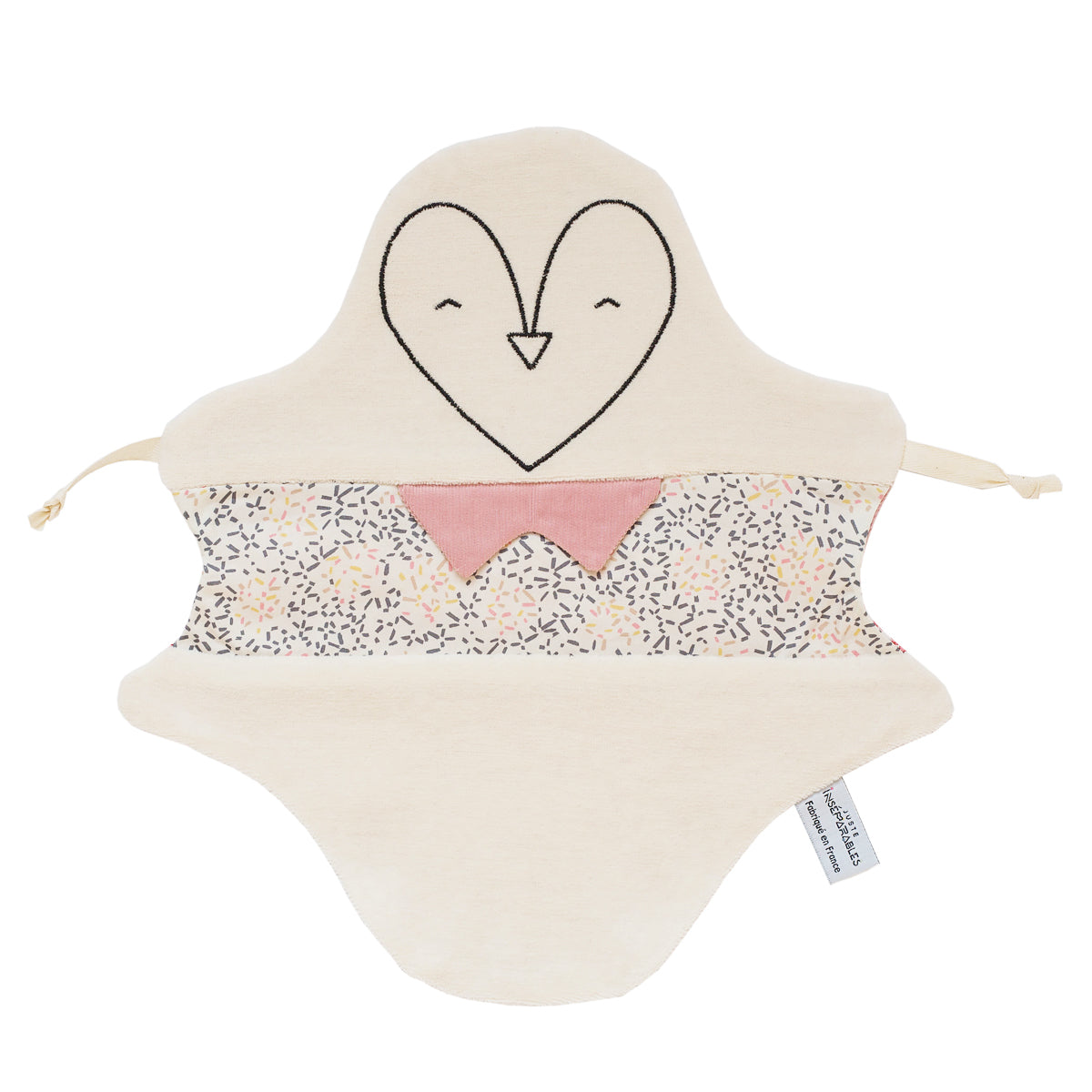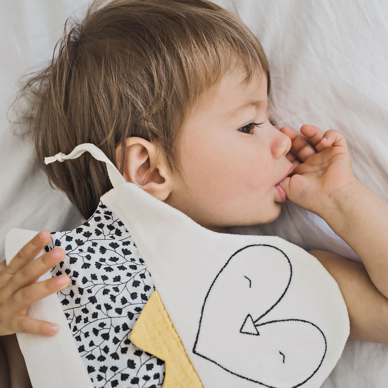 Pour l'éveil de bébé, rien de mieux qu'un petit compagnon tout plat, plus facile à câliner ! Chaque côté de doudou a un sens : l'un pour mâchouiller, l'autre pour tortiller... Les couleurs aussi sont contrastées pour être mieux perçues par bébé.