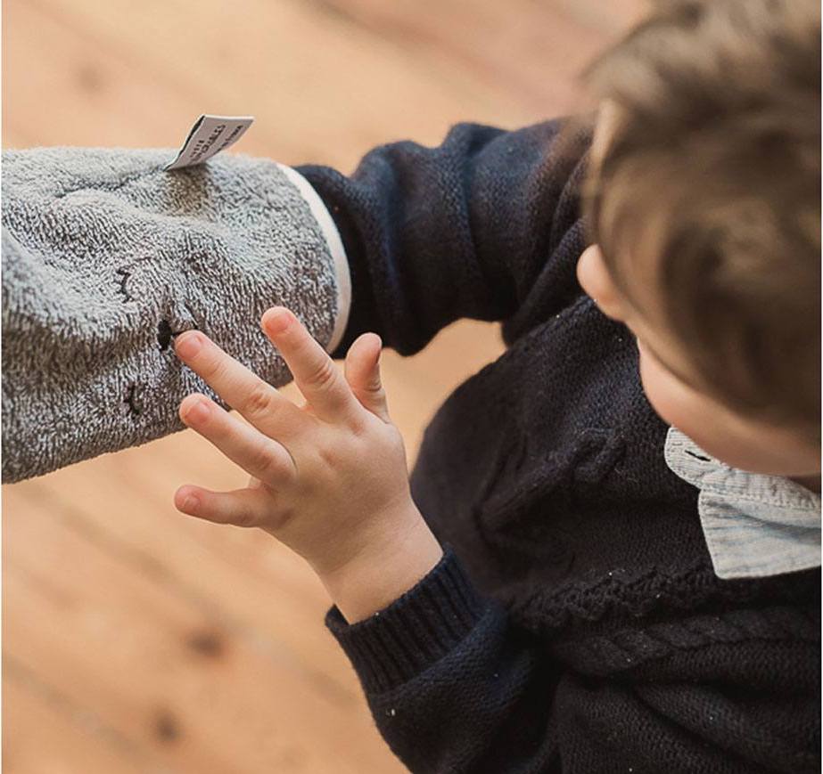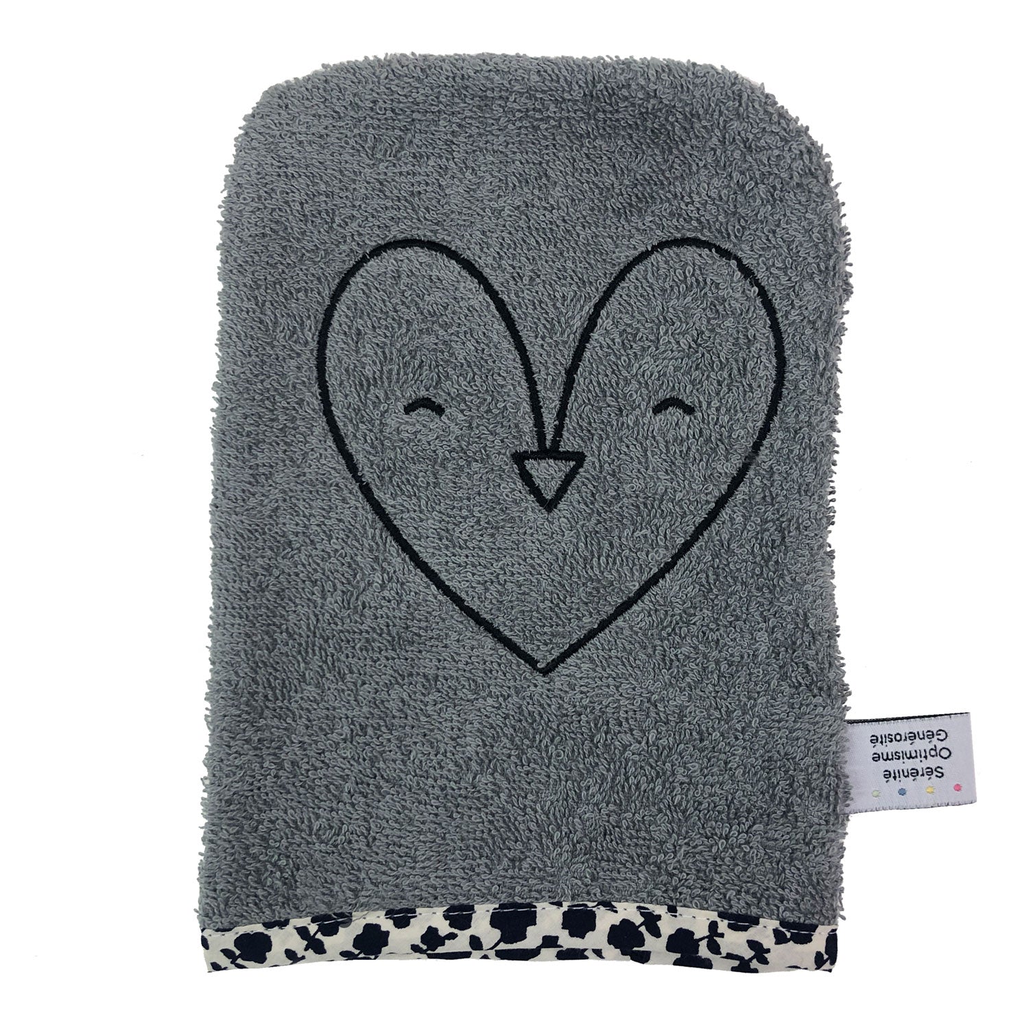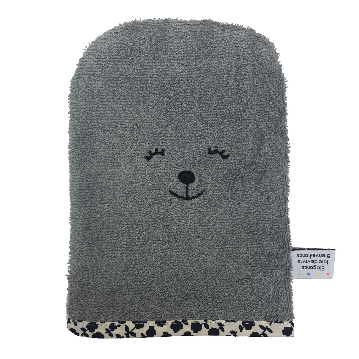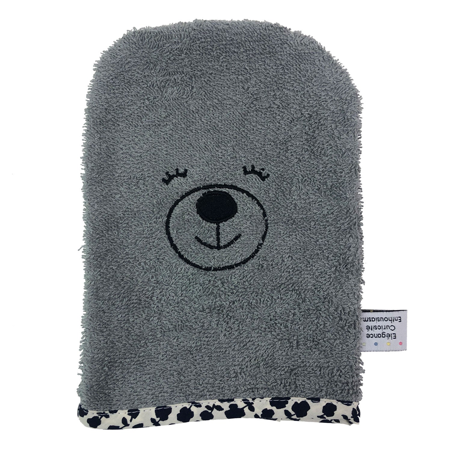 Gant brodé de ses 3 super-pouvoirs avec un visage d'animal pour accompagner bébé à l’heure du bain, éponge toute douce qui s'adaptera à la peau de votre enfant.